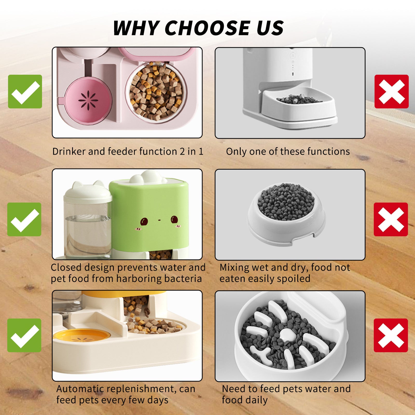- Integrated dual compartments for food and water